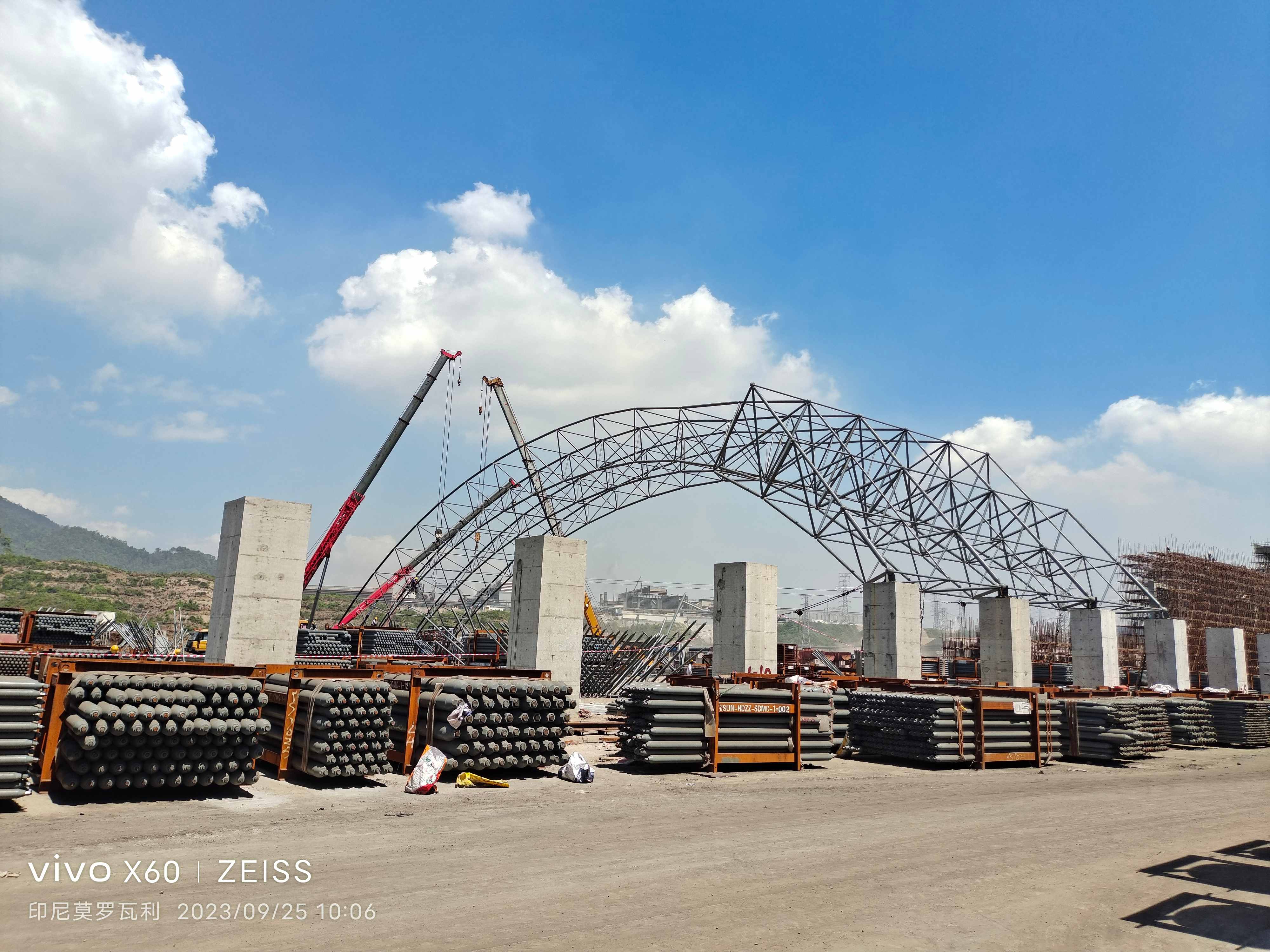 項(xiàng)目位于印度尼西亞跨赤道南北兩側(cè),屬于熱帶雨林氣候,終年受赤道低壓帶控制,盛行上升氣流,終年高溫多雨,主要降水類型為對(duì)流雨,年平均溫度27℃左右。料場(chǎng)東西跨105米(焦棚)、125米(煤棚)。本料棚為雙聯(lián)跨結(jié)構(gòu)型式,中間設(shè)鋼排水溝。下部支撐為獨(dú)立砼柱,邊柱高2.0米,中柱高5.0米。