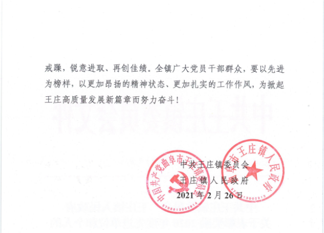 3月14日,曲阜市王莊鎮(zhèn)總結表彰暨重點工作攻堅動員大會召開。鎮(zhèn)黨委書記王洪生出席會議并講話,黨委副書記、鎮(zhèn)長李萌主持會議。企事業(yè)單位負責人等參加會議。我公司副總經(jīng)理楊鴻等受表彰的代表參加會議。