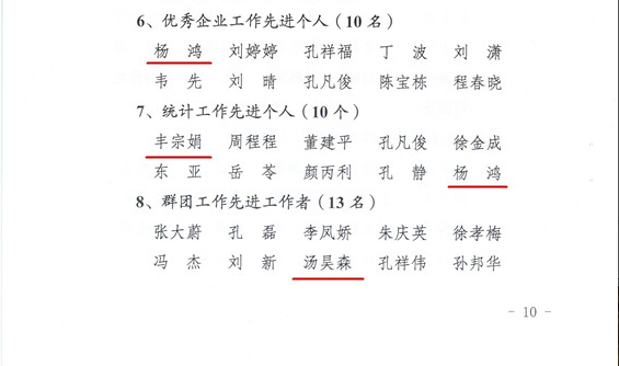 在表彰環(huán)節(jié),我公司被授予“突出貢獻企業(yè)”“管理先進企業(yè)”“社會貢獻突出企業(yè)”多個榮譽稱號,楊鴻同志被授予“優(yōu)秀企業(yè)工作先進個人”“統(tǒng)計工作先進個人”,豐宗娟同志被授予“統(tǒng)計工作先進個人”,湯昊森同志被授予“群團工作先進工作者”。