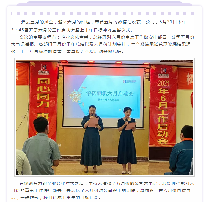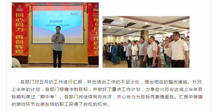 公司六月份工作啟動(dòng)會(huì)暨上半年目標(biāo)沖刺宣誓儀式順利召開