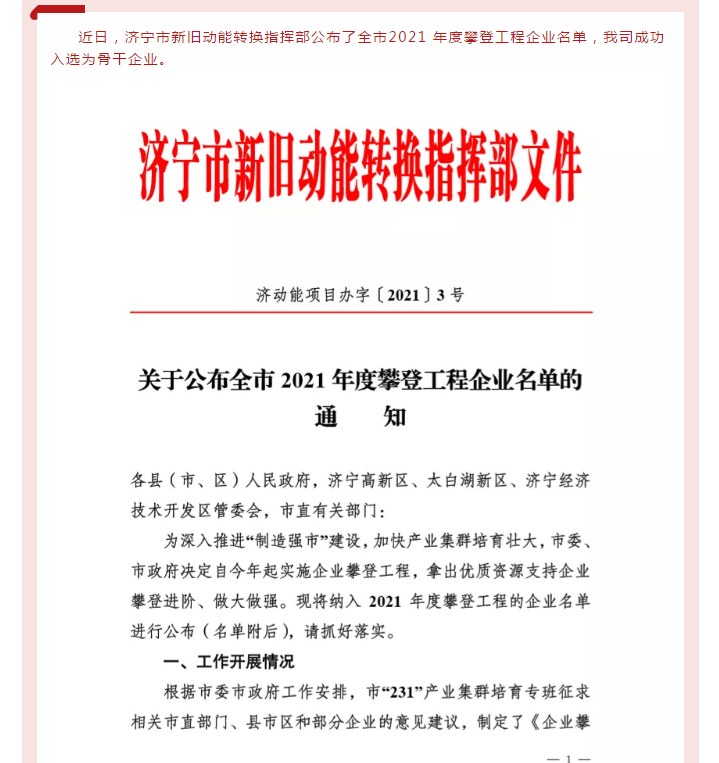 又傳喜訊!我公司成功入選濟(jì)寧市首批攀登工程企業(yè)