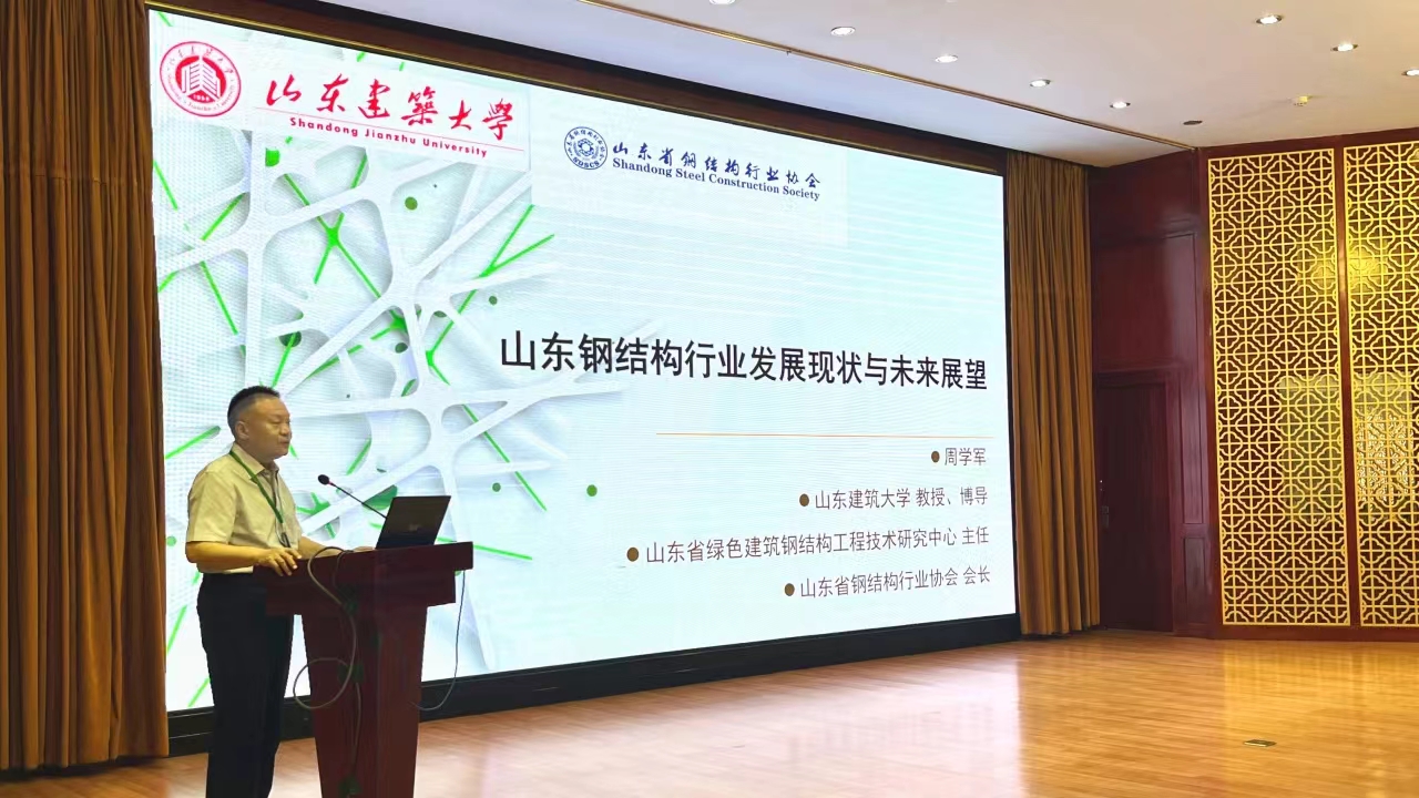 山東省鋼結(jié)構(gòu)協(xié)會會長周學軍以《山東省鋼結(jié)構(gòu)行業(yè)發(fā)展現(xiàn)狀與展望》為題作專題報告,周學軍會長首先回顧了山東省鋼結(jié)構(gòu)行業(yè)近年來的發(fā)展歷程,他指出,近年來,在國家政策的支持下,山東省鋼結(jié)構(gòu)行業(yè)得到了快速發(fā)展,市場規(guī)模不斷擴大,技術(shù)水平不斷提高,涌現(xiàn)出一批具有核心競爭力的優(yōu)秀企業(yè)。并表示,隨著國家對環(huán)保和可持續(xù)發(fā)展的高度重視,鋼結(jié)構(gòu)行業(yè)應(yīng)緊跟國家“雙碳”目標,堅持綠色發(fā)展理念,加大環(huán)保投入和技術(shù)創(chuàng)新力度,推動行業(yè)向高端化、智能化、綠色化方向發(fā)展。同時,他呼吁行業(yè)同仁加強合作與交流,共同應(yīng)對挑戰(zhàn),實現(xiàn)共贏發(fā)展。