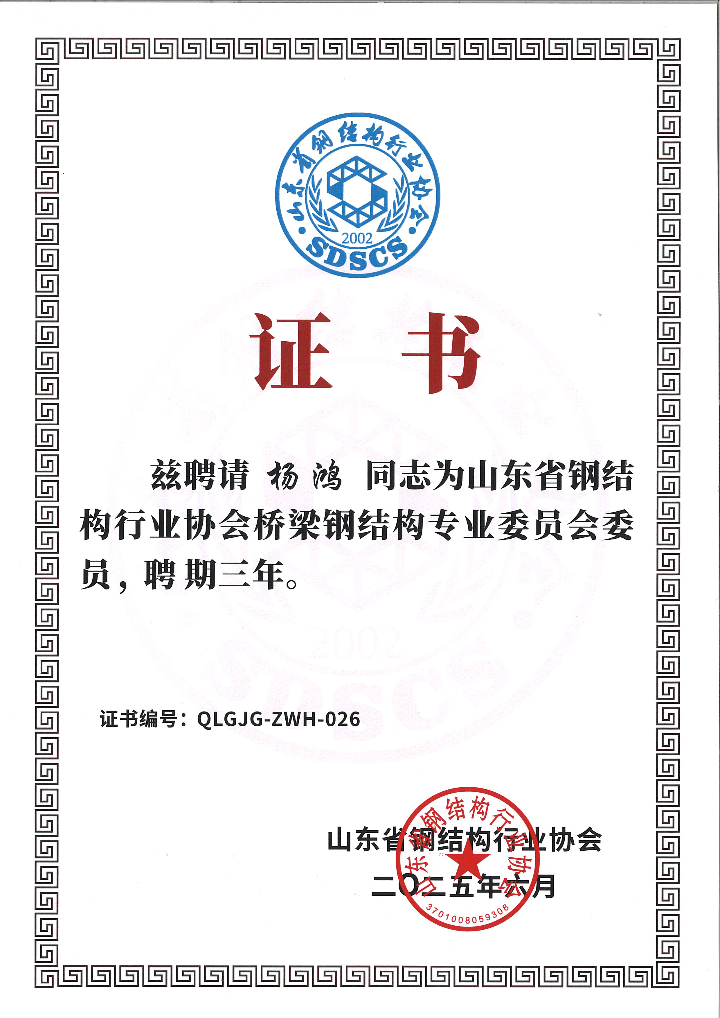 董事長張猛、副總經理楊鴻分別入選山東省鋼結構行業(yè)協(xié)會橋梁鋼結構專業(yè)委員會委員
