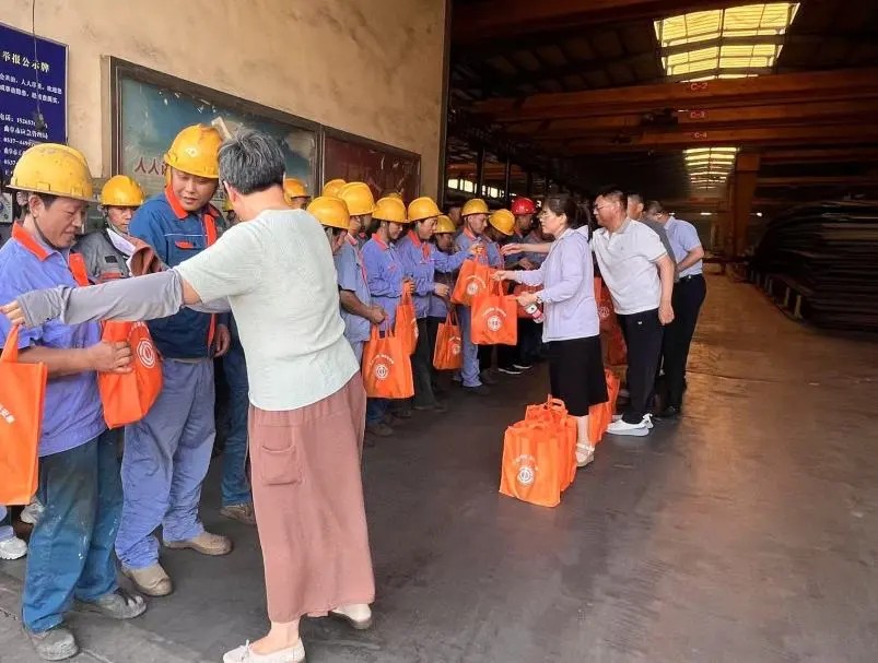 慰問組一行深入公司鋼結(jié)構(gòu)生產(chǎn)車間,將裝有防暑物資的“清涼禮包”遞到職工手中,并詳細(xì)了解他們的工作強(qiáng)度、防暑措施落實(shí)情況及生活需求,叮囑大家注意勞逸結(jié)合,做好防暑降溫。