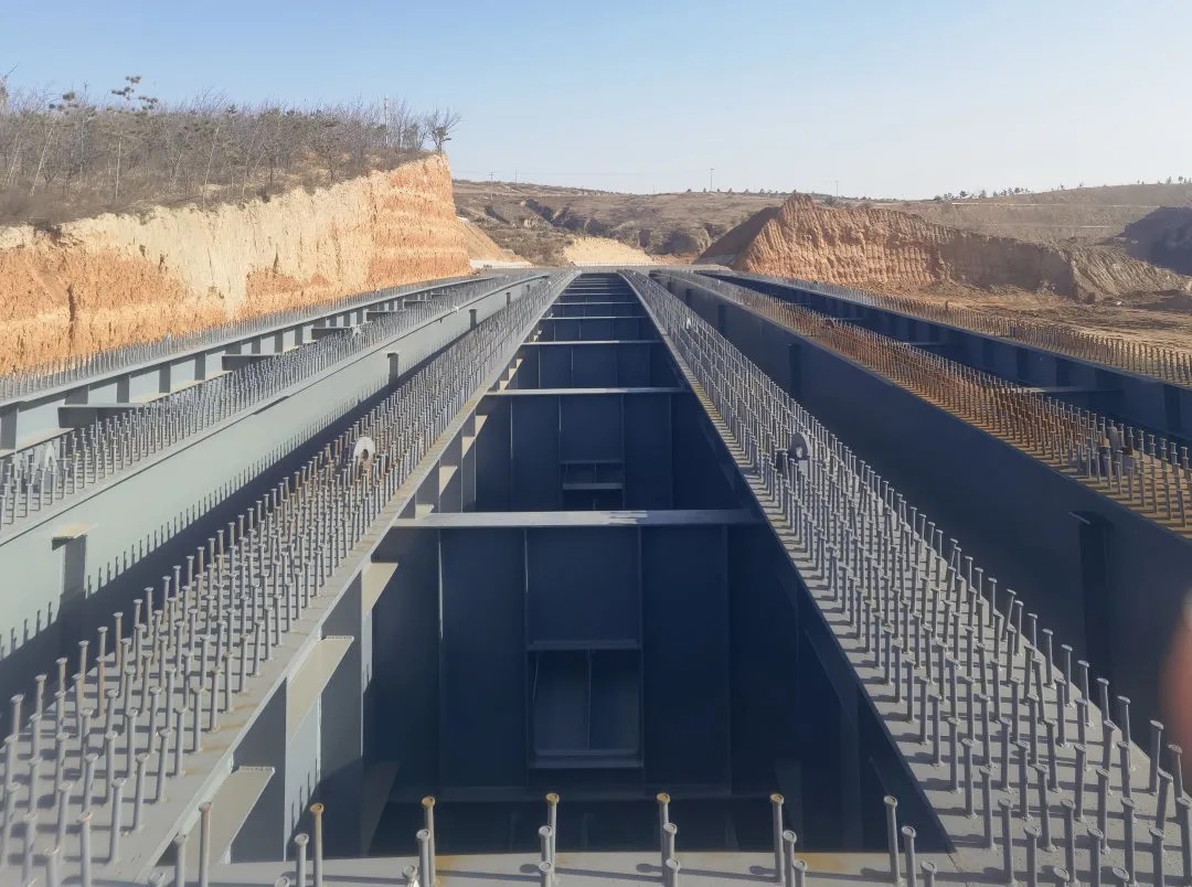 本項目路線起點位于省道S224曹羊公路K210+255公里附近,設(shè)計起點確定為與曹羊線交叉處東側(cè)900米,里程樁號為K2+100;本項目終點位于準(zhǔn)格爾旗長灘村西,與S31大飯鋪至龍口高速公路相接,終點樁號K56+320。主線路線長度為54.685公里,路面工程總長度40.282公里。上部結(jié)構(gòu)采用鋼-槽型混凝土組合梁,橋?qū)?6.5m,布置3道鋼主梁,箱梁寬3.0m,主梁中心間距3.0m,梁高3.0m,鋼梁高2.65m。